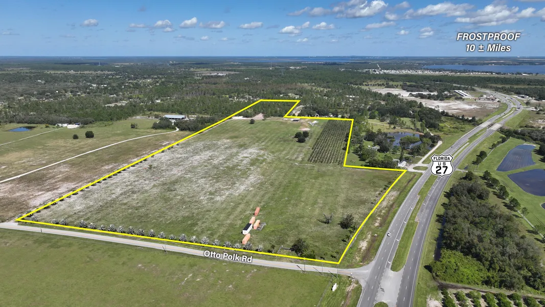 With almost 800 FT of road frontage on US Hwy 27, this property offers a unique mix of residential and commercial potential that is unlike any other property in the immediate area. The property consists of 100% uplands and has the benefit of additional road access with 940 FT of road frontage on Otto Polk Road. In 2019, Nucor Steel, the 2nd largest steel producer in North America, opened a mill just 4 miles south of this property. Nucor invested nearly $240 million into this location, and has room for expansion. Lake Wales and Sebring are both a short 25 minute drive, while Orlando and Tampa are only an hour and twenty minutes away. The property also has close proximity to Walt Disney World (1 hour), Legoland (30 minutes), Warner University (10 minutes), and South Florida State College (15 minutes). The approximate 41 acres of residential land allow for a max density of four (4) dwel...