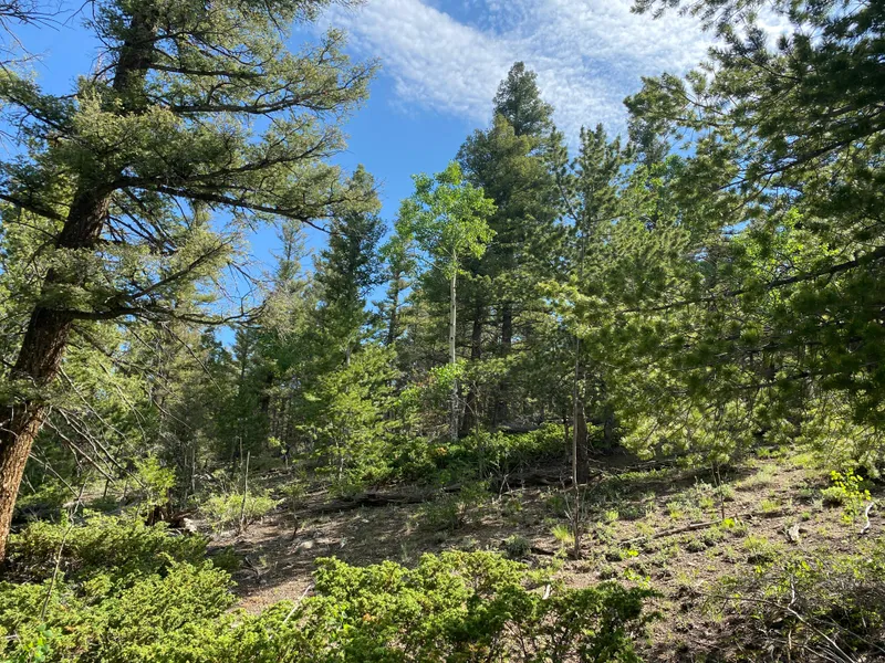 This one is a drive up into the woods of the Sangre de Cristo mountains. The property is a U shape around the road and is slope up from the road, but there is an area to the South that is more level you could put a driveway up for an off the grid hunting or a peaceful escape cabin Tons of big trees and wildlife up here and gorgeous views the higher you go up the property. Great access during the dry months, but access during the winter months will be limited due to snow.