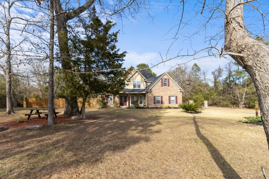 Functionality and great design! 4 bedrooms and 2.5 baths. Flowing floor plan. Dining room and breakfast area. Living room with vaulted ceiling and wood burning fireplace. Eat-in kitchen. Downstairs primary suite offers dual sinks, jetted tub, separate shower and huge closet. Enjoy your beautiful lot from the comfort of your covered patio or fire pit!