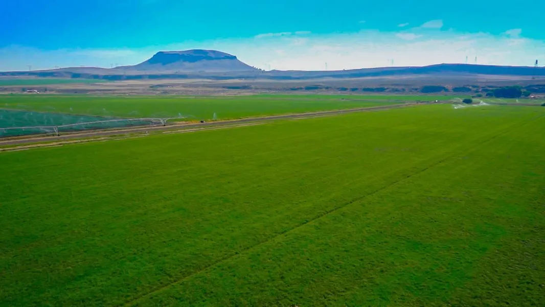 This is a working commercial ranch that grows alfalfa and orchard grass hay. It has 2 irrigation wells, pivot, linear, wheel lines, 2 homes, 2 barns, shop, and outbuildings.