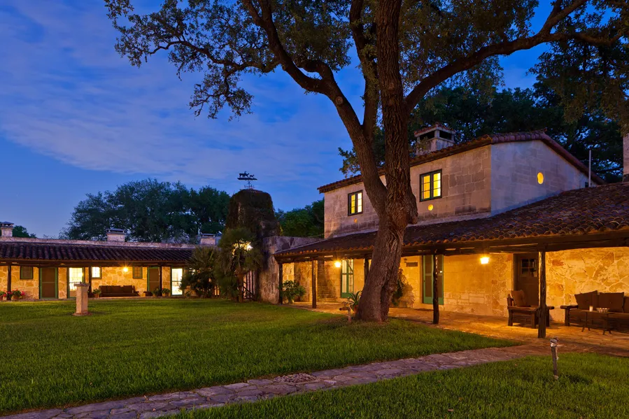 Gallagher Headquarters Ranch is a world all unto itself. An incredibly peaceful and protected setting so close to a metropolitan area. Its like going back in time both in the natural world as well as the historical buildings as if time stopped in the mid 1800s when the ranch was founded by Peter Gallagher, an Irish immigrant, brought to San Antonio as a young engineer-master stone mason by Santa Anna. Today with all the modern amenities of a new home this hand cut stone 19 bedroom, 17 and bath historic compound with 22 original fireplaces, sprawling porches, huge manicured lawns and beautiful gardens makes it seem that you are on a working historic Spanish hacienda.