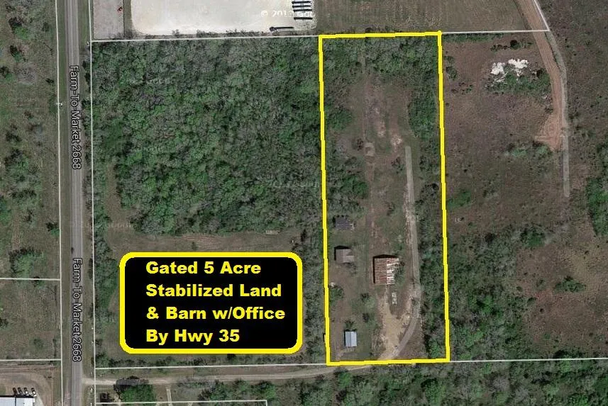 Great Price! Gated Stabilized 5 Acres & w/62x60 Barn By Hwy 35. Cedar trees line borders. Barn has 12-in slab. 26-inch deep gravel bed covering 60% of property is perfect for supporting heavy trucks or RVs. Great for RV park or multi-tenant residential/commercial development. Close to Matagorda Regional Medical Center and Matagorda County Sheriff/Fire Dept/Courthouse. 30 miles to Hwy 59 & 288. Gate is locked! Appointment required! Owner financing available! 4 Acres w/Barn is also available for Lease (see Listing #2290734)! Has city utitilies & well! Close to Tenaris!