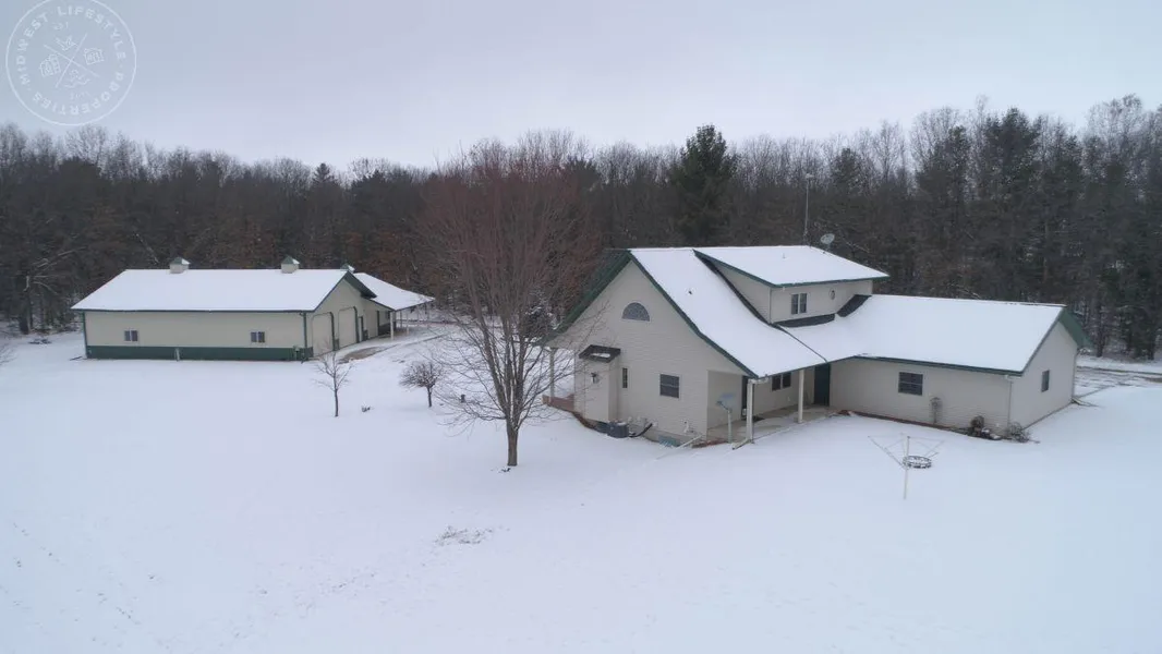 All of the appliances are top of the line and the home is truly extraordinary. The previous owner was a Master Electrician and you could only imagine the mechanics of this compound and the fine attention to details! Theres plenty of roof overhang creating a beautiful space to soak up the sun on the porch. The estate is heated with your choice of LP or an outdoor wood burning stove. In-floor heat zones include the basement, garage and pole building. An attached 2-car garage is situated toward the backside of the home and provides ample space for working on projects, however, youll have more than enough area to tinker after I tell you about the monstrous pole building!
