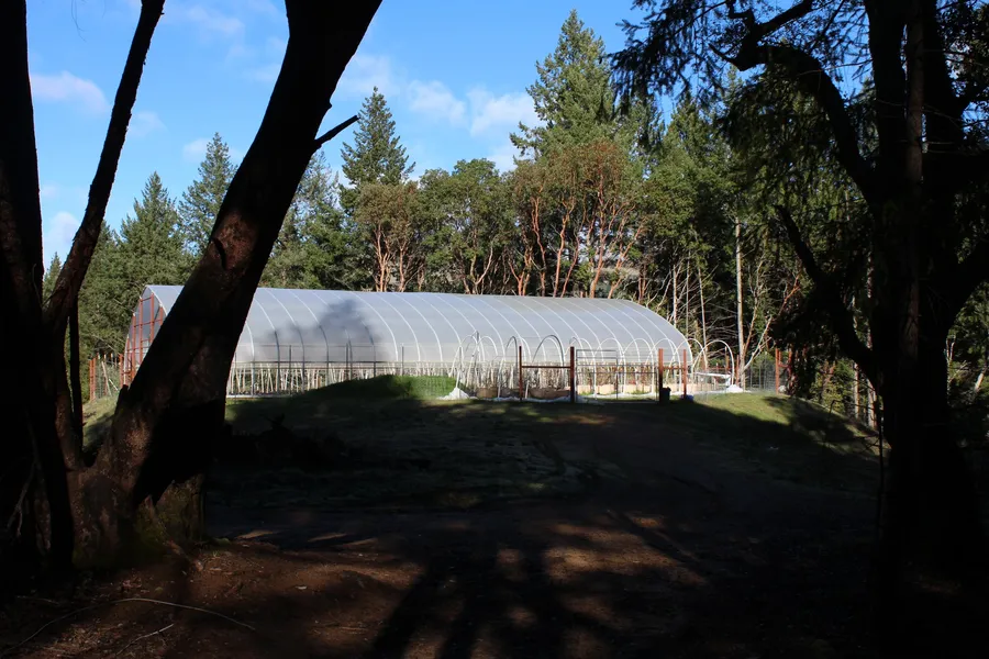 End of road privacy adds to the serenity of this land. Driving through the forest to the two open, sunny meadow areas, you will find many acres of gentle forest, perfect for hiking or your dream plans. Greenhouses 42X96 occupy both meadows. If you are a farmer go to work. There is room to develop around the greenhouses. Or remove them for your plans. Good Well. Off Grid.