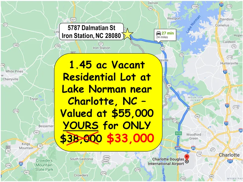 Research Parcel InformationTake the Highway NC-16 toward Lake Norman. Turn West on NC-73 and drive 5 miles to Dalmatian and turn left. Drive .3 miles and the property is on the right. (NOTE: Google INCORRECTLY lists the street as Dalmation with an "o" at the time of this listing)