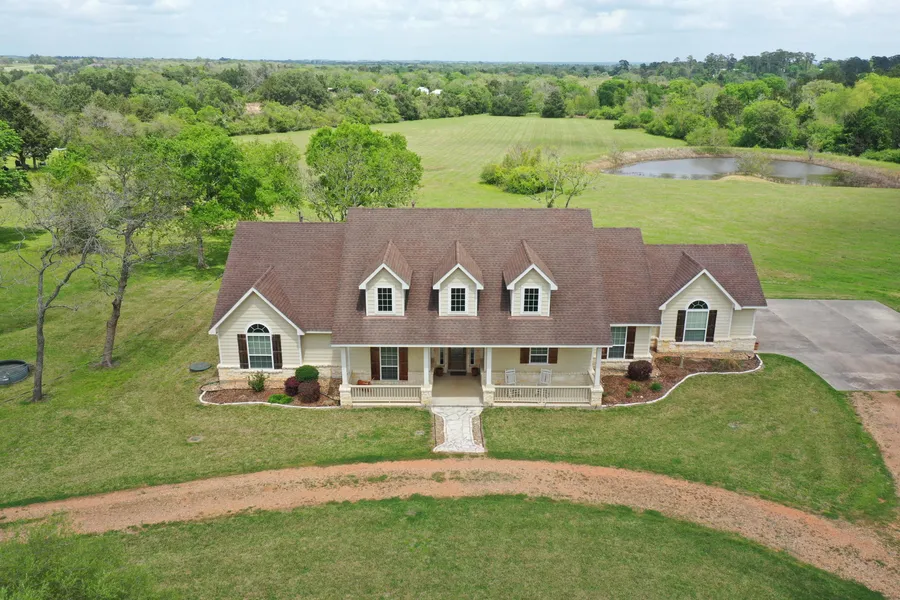Country home right in town, 13+ acres with frontage on two public roads. 3BR 3B 2car attached garage. And yes, a pond. Home was built in 2007, high ceilings, quartz in the kitchen, tile, carpet and engineered wood floors, and fireplace with double sided hearth. A portion of the acreage is under agricultural valuation. Back porch overlooks the meadow and pond for relaxing home time. Small grove of pecan trees for nut gathering therapy.