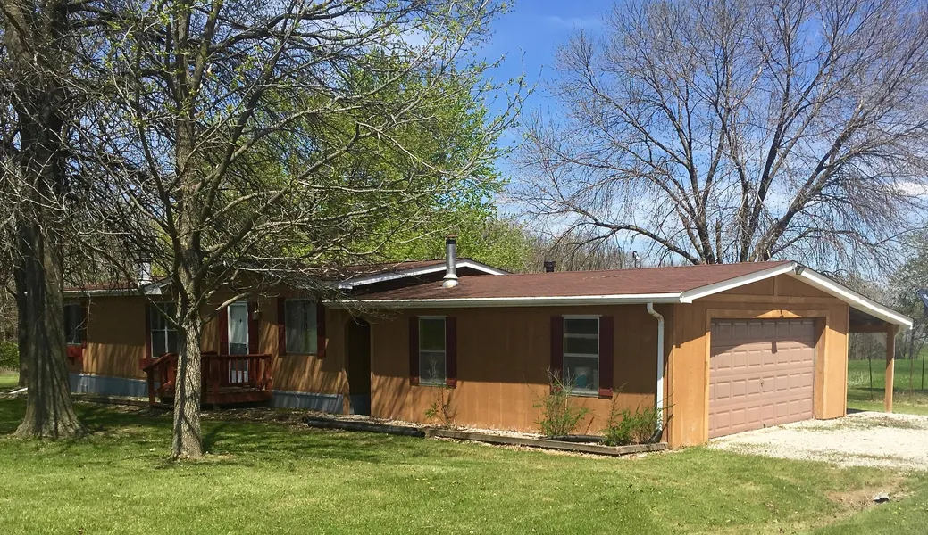 This spacious 3 bedroom, 2 bathroom lake-view home is located in the exclusive Golden Eagle Reserve vacation community. Sitting on a 125-acre stocked lake, the home includes a pontoon boat and access to a private, newly-constructed dock. The main entrance to the house opens up to a roomy, carpeted living room with a wood-burning fireplace. Off the living room is the kitchen, with wood countertops and wooden beadboard cabinets. The kitchen includes Kenmore appliances and the peninsula makes a perfect breakfast bar. Next to the kitchen is an eat-in dining area that walks out to the giant screened-in porch and uncovered patio that boasts amazing views of the lake and Goose Island.