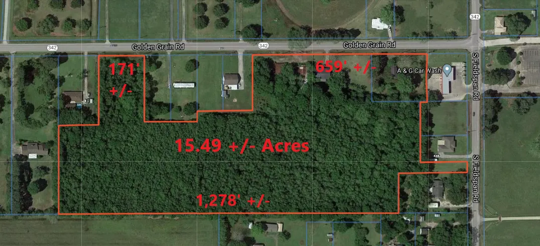 This new investment opportunity has approx. 15.49 acres and offers lots of frontage on Golden Grain Road along with access to S. Fieldspan Road. The property is currently heavily treed with some abandoned structures and is being sold "AS IS". Many development possibilities for such a great location in Lafayette Parish.