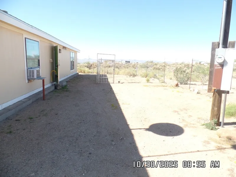 Located on a paved road at 3921 N Bowie RD, Golden Valley, Arizona, this inviting home is ready to welcome you. Imagine mornings spent in the sunroom, bathed in the warm Arizona light, as you gaze upon the majestic mountain view. The living room, with its vaulted ceiling, offers a sense of spaciousness, perfect for relaxation. The kitchen features shaker cabinets accented with crown molding, providing an elegant touch, along with a kitchen bar and peninsula, creating an ideal space for gathering and preparing meals. The bathroom offers a walk in shower. With 1232 square feet of living area, this 2 bedroom, 2 bathroom manufactured home, built in 1991, offers comfortable living in a rural area. This could be the perfect place to create your own desert sanctuary. Currently not hooked up to propane.