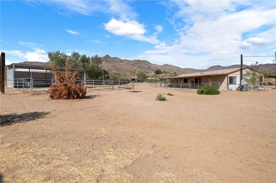This two-bedroom, two-bathroom residence, is ideal for equestrian enthusiasts. This home features inviting front and back covered porches perfect for enjoying both morning and evening. The kitchen provides ample cabinetry and counter space, complementing a spacious living room and a convenient indoor laundry room. The primary bedroom boasts a generously sized walk-in closet. The second bedroom offers lots of space. The property is fully fenced, offering extensive RV parking. It also includes two stalls, a sizable pen area, and an 8 x 10 outbuilding with concrete flooring for all the items you may need to store for various animals such as goats, chickens, or horses. Situated on a 1.10-acre lot, the home offers picturesque views of the spectacular Golden Valley mountains and abundant space for recreational vehicles and animals.