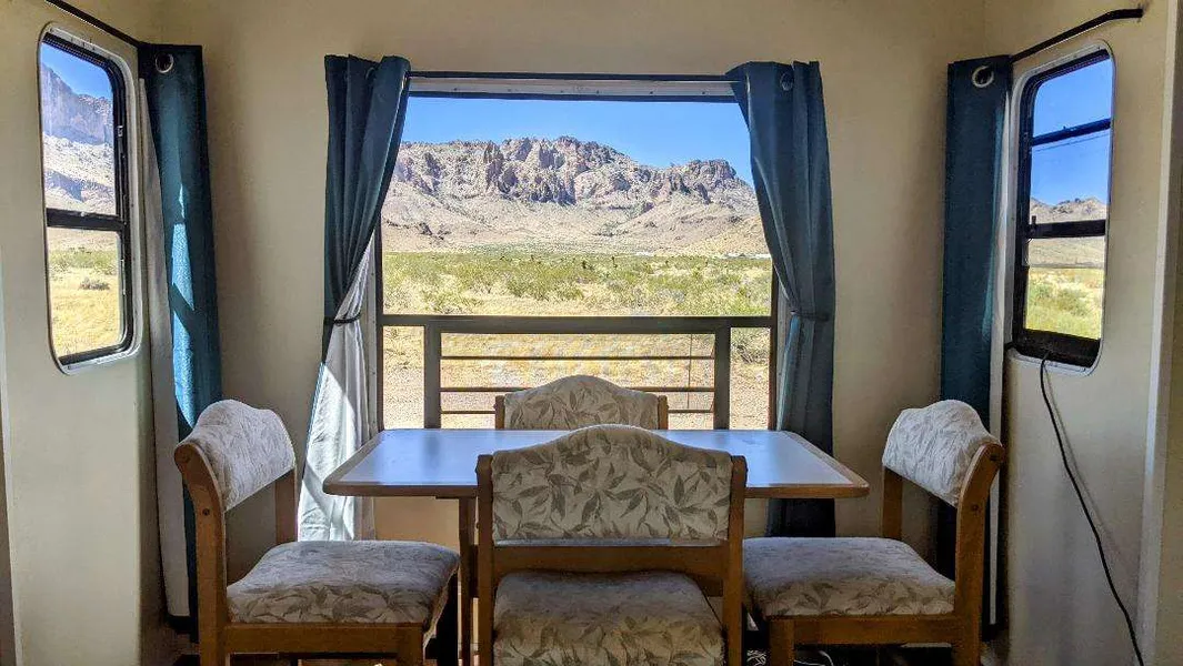 Enjoy the peace, tranquility, and many outdoor adventures while glamping or living full time off grid on 2.35 acres. Overhauled fifth wheel trailer with beautiful views of the Hualapai and Black Mountains. Very secluded but still only 30 minutes to Kingman for all your amenities. Fifth wheel features 2 slide outs in the living room for a large living room area. Fully functional kitchen with all kitchenware included. Queen sized bed in step up bedroom area with plenty of closet and drawer space. Bathroom has regular house toilet that is connected to a county permitted on-site septic system. 1500-gallon water tank that is gravity fed, and pump powered for nice water pressure. Propane hooked up for all your cooking, hot water, and heating needs. The solar system is a 2400-watt system that powers both AC/DC for the entire unit. There is also a smaller 500-watt Bluetti unit that is good for ...
