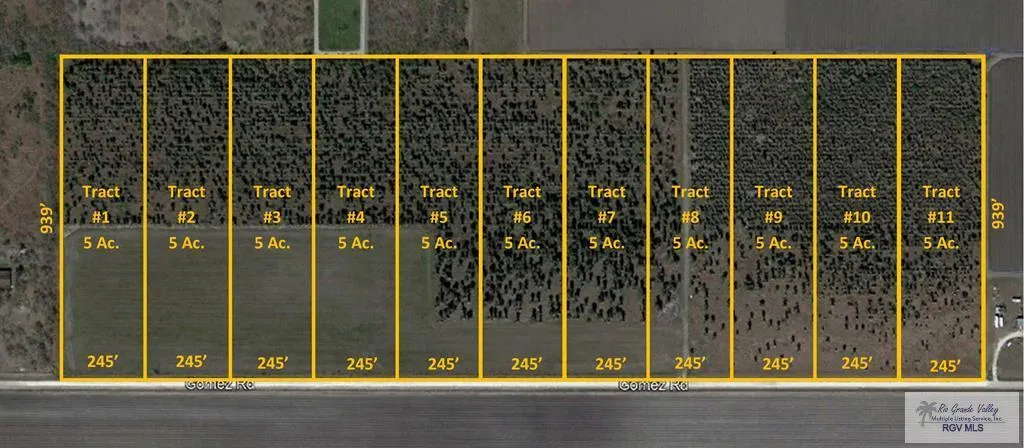 Nicely located 5.01 Ac. tract of land between Harlingen and Rio Hondo. This property would be perfect for a small ranchette where you can build a new home or install a new mobile home. Farm animals are allowed on these country homesites. There are 11 rectangular tracts in all and they all offer 5.01 acres of land with over 245' of frontage and 939' of depth. Each tract has access to city water through East Rio Hondo Water Supply and access to electricity as well. Each of the tracts have mature palm trees growing on them and each person that buys a tract can choose to keep their palms, remove them, or harvest them and sell them. The tracts are restricted to residential use and no commercial businesses can be created on the tracts. When irrigation water is available owners will be able to get "out of district" water. Owner Financing is available for as low as $7,000 down payment. No Subdividing Required!