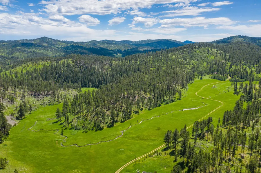 Once in a lifetime opportunity! Gorgeous 58 acres with East Slate Prairie Creek running through, surrounded by USFS, and just minutes from Deerfield Lake. Beautiful lush meadows - great views abundant wildlife! High quality studio cabin tucked to the north end in a grove of aspen with beautiful vaulted ceiling rooflines and lots of windows. Very architecturally pleasing. Enchanted reading nook loft tucked behind fireplace. Cabin was meant to be guest home for home that was never built so infrastructure is in place and the best building site is right there. Overlooks the entire valley! Cabin has 28x24 drive under garage for vehicles and toys. A Black Hills Hidden Treasure!