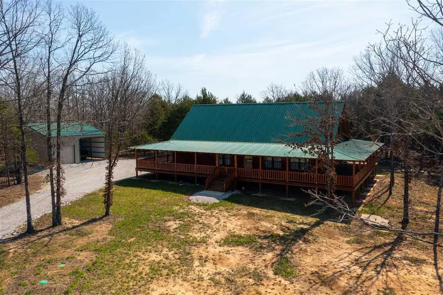 Gorgeous residential Cedar Log Cabin, built in 2019, sitting on approximately 6 acre property just 3 miles from the center of Cave City, AR 72521 in Sharp County. This home has 1750 +/- square ft heated and cooled, truly a log cabin with real logs, hardwood flooring, insulated windows, 2 bedrooms 2 bath, laundry, large kitchen with a large island, granite countertops, farm sink, gas fireplace for backup heat, vaulted ceilings with large ceiling fans, dimmable lighting, pantry off kitchen, French doors off dining room, complete walk around 10 ft porch. This home has lots of natural lighting in it along with 3 doors that lead outside to the wrap around porch. Inside has the cedar logs along with some pine for walls and ceilings. There is a tree in living room for a hat rack. Large windows in living room for lots of light. House has spray foam insulation. In the master bedroom there is a farm style door leading into the master bathroom with his and her closets, double sinks, jetted free standing tub, shower and toilet. The laundry room has the other bathroom inside it with a vanity, toilet and a shower. This room has a door leading outside and there is a nice shop with part inclosed with an automatic garage door, a workshop room and an area for your tractor. This home was built in 2019 and is ready to move into. Located down highway 58 with highway 58 road frontage, just outside of Cave City. There are lots of whitetail deer and turkey on this property and a feeder in the front yard. There is also a night light outside of the house. If you would like to make an appointment to view this home call Pamela Welch at 870-897-0700.