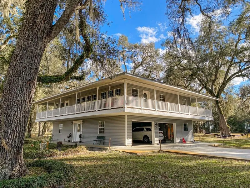 Nature Lovers Seeking Complete Serenity, Comfort, and Functionality...Think Dutton Ranch or Southfork meets Gone With the Wind....Drive in the winding asphalt milled drive under granddaddy oaks to your secluded oasis on 80 serene acres where wildlife abounds. This Beautiful 4 bedroom 3.5 bathroom home has a second-story wrap-around porch, just waiting on you to come and sip coffee as you take in nature. This home features a two-car garage with a 52X60 workshop, outbuilding, with that office to carry out your home-business or work remotely. Upgrades throughout the home include granite countertops in the kitchen and baths, as well as touchless kitchen faucets, waterfall faucets in the baths, stainless appliances, and a stone fireplace. Minutes to the Famous Suwannee River, and many Springs. 30 Minutes to the Gulf of Mexico. Easy commute to Lake City, Gainesville, and Ocala. Centrally loca...