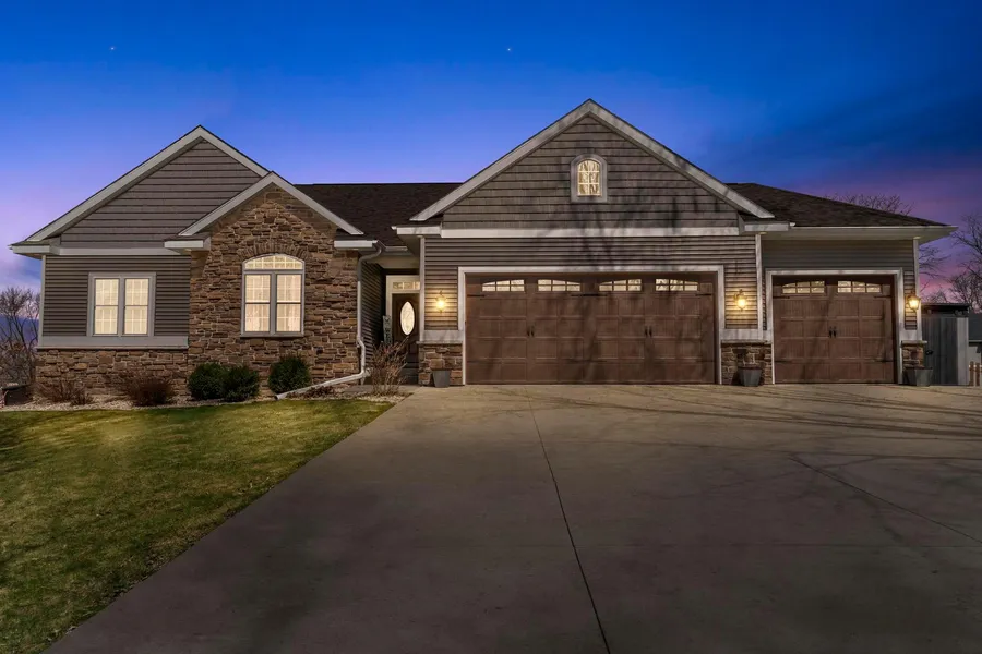 Gorgeous, Dane County home, located in Windsor, Wisconsin. Let this modern, 5 bedrooms, 3-bath home, nestled near Lake Windsor Golf Course and a beautiful family park, steal your heart and soul. Nothing says 'home' quite like living here on quiet East Oak Lane. Your gorgeous kitchen invites friends and family to come and watch your next gourmet creation. An easy-access pantry keeps you stocked and ready. You grab a wine glass and open a bottle of wine from your nearby wine bar area, and enjoy beautiful views from the living room windows and French doors leading to your cozy deck. Morning coffees on the deck never get old, giving you ample time to draw your breath and enjoy watching your dogs get their daily run in your spacious backyard- it truly is their best life! The patio beneath invites lazy summer and fall evening campfires. Marshmallows, chocolate bars, and graham crackers are aways the main course. Back upstairs you shower in your on-suite master bath and quickly draw out your workdays clothes from your walk-in closet. You dash downstairs to your home office and get the morning's meeting agenda off and align your workday. Busy feet are heard as morning wake-up alarms call for a new school day to begin. With full stomachs and backpacks ready, you make one last stop in the handy mudroom for shoes and coats. You all dash into the spacious garage and hop into the car for a quick ride to school. Driving home you glance at the Lake Windsor Golf Course; life has landed you on the fat side of the green. No sandbagging for you. The weekend has you hosting a golfing reunion, so you hope to get a few swings in the backyard before hitting the green with your foursome. Later on, youll serve drinks and appetizers at your amazing in-home basement entertaining bar area. More games and relaxing finish out a great day and weekend. A brunch tomorrow morning out on the deck rounds out your weekend. Family, friends, and a life well lived. Dont wait to live your dream on East Oak Lane.