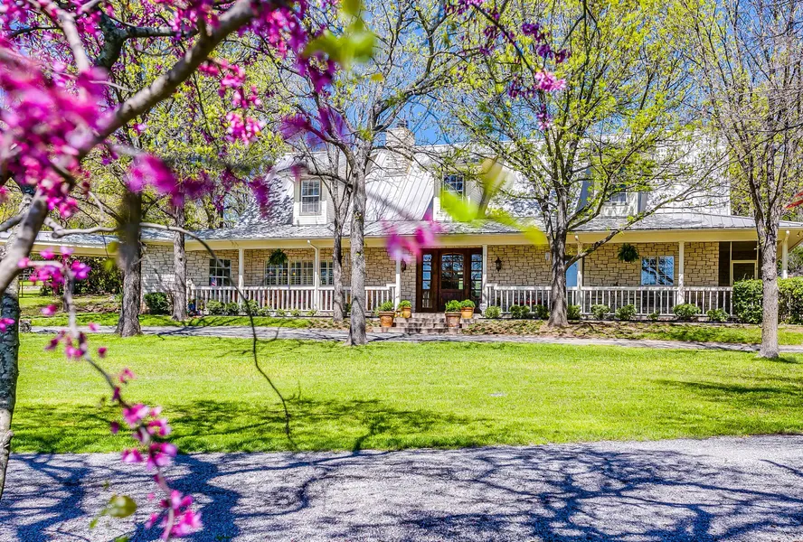 3D Tour Available! Incredible opportunity on the highly coveted Jenkins Rd. Amazing picturesque stone farmhouse on 13 acres in Aledo ISD! Beautiful mature oak trees create a park-like setting as you pull up the circle drive! The home boasts an amazing open living with soaring ceilings & tremendous stone fireplace. Wonderful farmhouse kitchen with tons of cabinets, granite counters, and vintage style ceiling, all open to the dining and cozy den with handsome fireplace. Large master suite with fireplace and enormous bath. Office and guest bed down with 2 beds up. Sit and listen to nature on the beautiful covered porch and gaze over the gorgeous pastures that lead to the Clear fork of the Trinity River. Fenced and cross fenced. Includes a 3 stall shed row barn with feed and tack room, as well as, a chicken coop.