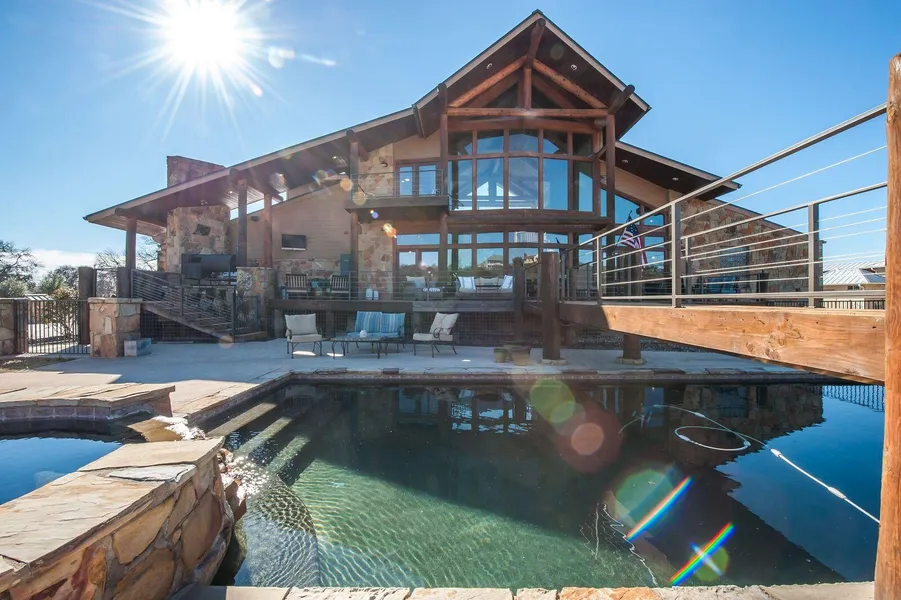 Beautiful home with breathtaking views located right on the Brazos River. This open concept 3 bed, 3.5 bath custom home includes a gourmet kitchen with a commercial grade range and high-end appliances. Lots of natural light with gorgeous log beams and custom rock throughout. Tons of outdoor living includes a kitchen and fireplace as well as a walkway to the boathouse. The boathouse is 2-story with 2 boat lifts, 2 jet-ski lifts, and a sundeck.