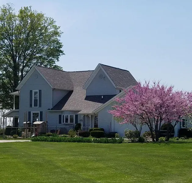 Look no further for your dream country property! Gorgeous, Modern-Farm House on 2 acres with 5 bedrooms, 2 baths, large remodeled kitchen with custom cabinetry! Kitchen is ideal with lots of storage, countertop space, gas range, and pantry! Kitchen opens to the Dining Room and Living Room both with Hardwood floors and detailed trim. Home has 2 downstairs bedrooms, one is currently set up as a licensed beauty salon with separate entrance and driveway for clients. Easy to convert back to a bedroom or to utilize for your business! Upstairs features 3 bedrooms with large closets, full bathroom and a landing area great for kids to play, office area or whatever fits your needs! Home has been completely updated including: Newer premium lifetime roof, newer furnace & central air conditioners, water softener, updated electrical with 200 amp service and new windows throughout! Hardwood and lamina...