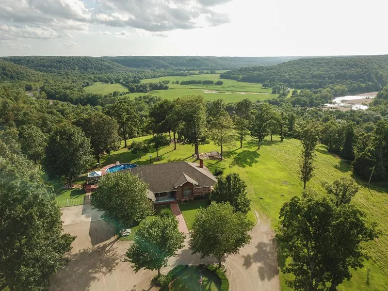 This picturesque farm sits on one of the highest points in the area and gives a postcard worthy view of the sunset overlooking crop fields, Big Sugar Creek, and timbered ridges in the distance. The home sits at the end of a long, winding driveway that creeps along the pasture tops of the ridge. The very clean, custom home boasts 3 bedrooms and 2 bathrooms and is over 2,000 square foot. A very large living room and kitchen give the communal area of the house a very open and warm feel. A porch that wraps around 2 sides of the home share the best views of the property. A large 24X40 shed is large enough to tackle any mechanic job or wood project and is outfitted with a bath, shower, and washer and dryer hookups. Deep, mature timber holds lots of deer and turkey. The pastures and meadows on the tops will give you acreage to graze cattle, and some intermittent water in the canyons give you lots of extras to enjoy. With tight cattle fence surrounding the cross fenced pastures, you can easily rotate your heard from pasture to pasture. Several trails help you utilize most of the property, giving you have access to all the great things this farm has to offer. As a bonus, there are lots of wild blackberries and raspberries on the property! This stellar ozark farm is very clean and well manicured.