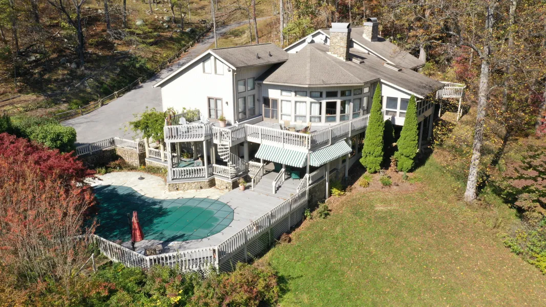 Welcome to Sheep Creek Farm. Follow the curved, paved drive, meandering along Big Otter River to mountain rocks, which are incorporated into the home in the fireplace and planter boxes & the sound of the rushing creek. Up stone stairs, to the entrance, to the open LR w/ recessed lighting and curved wall of casement windows, stone gas log FP. Custom built-ins & set-ins. Hallway w/lighted cabinets, ice maker, wet bar. Kitchen: corian countertops-custom family built cabinets & pantry-S/S freezer/fridge-6 burner gas cook top-dbl JennAire wall oven-access to bkfst deck. The dining room has access to screened porch, the exterior deck and has a stone FP and a custom art light fixture. Screened porch w/calm atmosphere & constant background of rushing creek. The Master bedroom has a cathedral beadboard ceiling, access to upper deck that overlooks the inground pool. The bath has dual walk in closets, large dressing table, dual vanity and a pull down to separate, finished attic storage. The second Master has WIC, whirlpool tub, enveloped by nature through the sunroom, w/access to deck. The second level has 2 BR & hall bath. The lower level has the 2nd kitchenette and lounge area, 5th BR/bunk rm, a sauna with attached full bath. Rec room with stone FP. Lower level walks out to covered deck and pool. New pool pump & fencing. The property is great for hikes/walks. This loved family home is great for grandma camps, retreats.