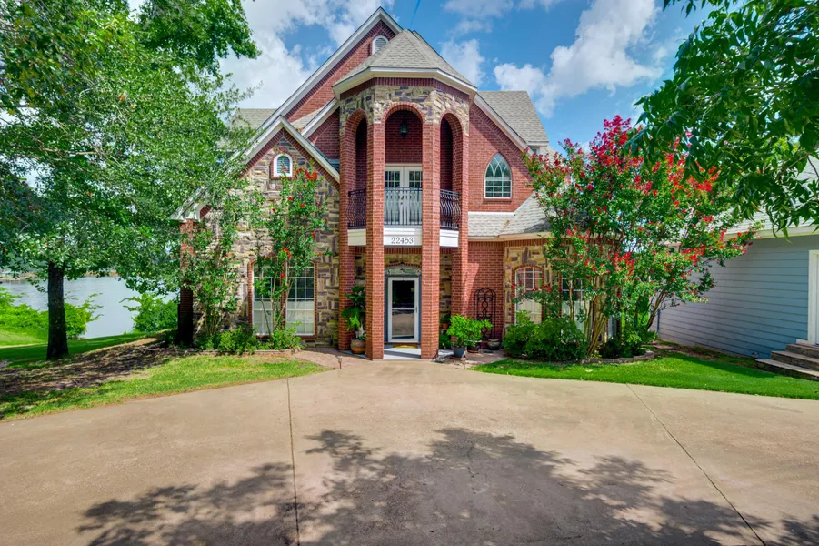 Discover easy move-in ready lakeside living on Lake Palestine! Beautifully updated and well-maintained lake house offers 2381 sq. ft. with 3 bedrooms & 3 full baths. The open concept living & dining area features a 2 story vaulted beamed ceiling with stone wood-burning fireplace and accesses the inviting covered back patio - perfect for enjoying the tranquil lake breeze. The spacious kitchen boasts a stone surround for the stove, generous cabinetry, large pantry, breakfast bar that seats 6, & a dining area positioned to capture breathtaking open water views. Two comfortable guest bedrooms (1 with ensuite bath) and additional bath are conveniently located on the main level, along with a sunroom/office/bonus room lined with walls of windows that flood the space with natural light & gorgeous views of Lake Palestine. Upstairs, the private primary suite is a true retreat with sitting area & a spa-like bathroom, all designed to maximize elevated lake views. Stroll down the sidewalk from the patio to your own three stall boathouse with electric lifts, storage area, and an open deck. An impressive 6' water depth at back of boathouse is ideal for effortless fishing and boating adventures. A sturdy boulder bulkhead helps protect the shoreline from erosion while framing your view north across the wide lake vista. At the front of the home, a concrete Circle Drive leads to a separate 28' x 30' garage providing ample storage for vehicles, lake toys, and more. Conveniently located just off State Hwy 155, this lakeside gem offers easy access to Tyler, Frankston, & Palestine - making it the perfect weekend getaway or full-time residence on beautiful Lake Palestine.