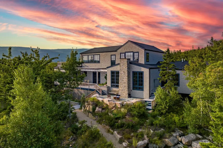 Gorham Mountain Lodge, set on 6.05+/- acres, with a 3 bedroom-3 bath-2 car garage Main House of 6392 +/- sft, and a 3 bedroom 1 bath Guest cottage of 1595 +/- sft, at the base of Gorham Mountain abutting Acadia on 2 sides, with full views of the Dorr-Cadillac ridgeline to the ocean and outer islands. A newly built Main House (#21) in 2021, and guest cottage (#10) in 2018, feature shingle style cottages built by J. Hurst Woodworking,LLC for maximum energy efficiency, and reflecting the principles of elegant design with respect to the land, use of sustainable materials- all in harmony with nature.