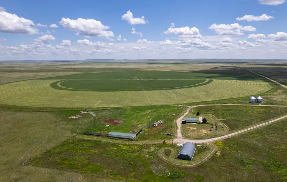 The Goshen County Farm is situated approximately 30 miles northwest of Torrington, Wyoming, and approximately nine miles east of Jay Em, Wyoming. The farm consists of 521.78 deeded acres of which 420.3 acres are irrigated under three low-pressure center pivots. Most recently, the north pivot is planted a one-year old stand of alfalfa and the remaining two pivots are currently used for high-intensity rotational grazing, but have historically been used for variety of crops including alfalfa, corn and sunflowers. There are two irrigation wells ranging from 350 to 400 feet in depth with static water levels around 200 feet. The irrigation well that provides water to the north pivot produces 750 GPM while the second well produces approximately 725 GPM. This second well provides water for both the center and south pivot. The domestic water well was drilled and completed in 2013 at a depth of 300 feet, static water level of 200 feet, and producing approximately 10 GPM. In the past two years, several upgrades have been made to the pivots including new master panels, underground center drives, gear boxes and sprinkler heads and the wells have been updated with new bowls and motor service. Improvements on the farm are well-maintained and include several outbuildings along with two 50,000 Sukup grain bins. The 1,440 sq. ft. Morton home has one bedroom, one bath, and includes a modern kitchen and appliances, and office.