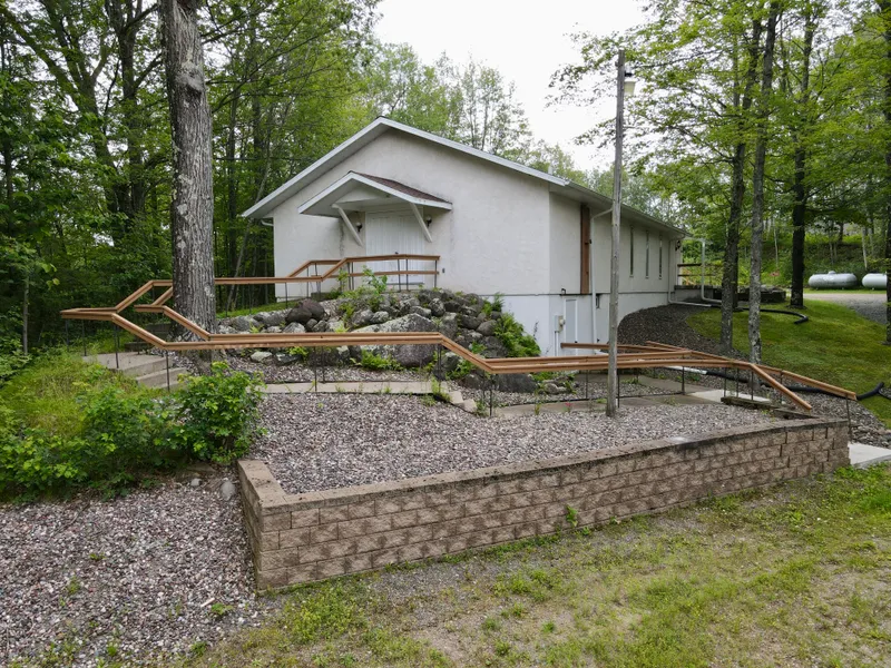 What a beautiful spot to make your home. This was formerly a church, so an open concept for you to finish into anything you can envision. Totally finished lower walk out lower level. This one has so many possibilities. Built in 1986 and new roof and gutters in 2021. There is also an 18x26 garage, that was built in 2008. A pretty wooded lot, and shared driveway that still gives you the privacy of country living.