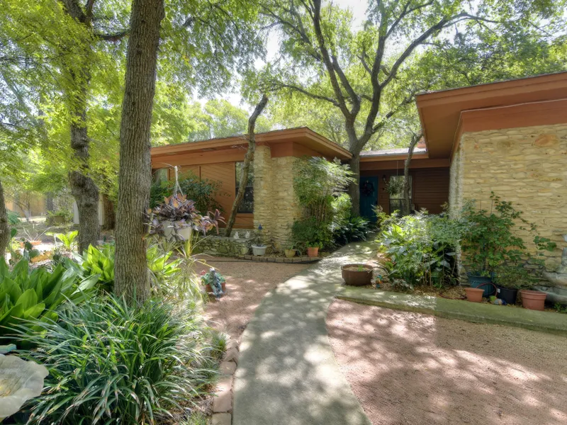 Private oasis tucked among the oaks on 5.499 acres just off Mopac. Creek at back of property. 4-3-2+Apartment 1bed/1bath & Kitchen/Living(currently rented). Bring your horses! Kitchen w/slate backsplash, stained ash cabinets. Reverse osmosis system. Living w/wood burning stove/fireplace. Wood floors. Master split frm other bedrooms. Carpet in bedrooms. Walk in closet. Marble vanity in master bath, utility room w/cab, cedar wrap around porch with wooded view. Extra storage room garage. Sprinkler systm
