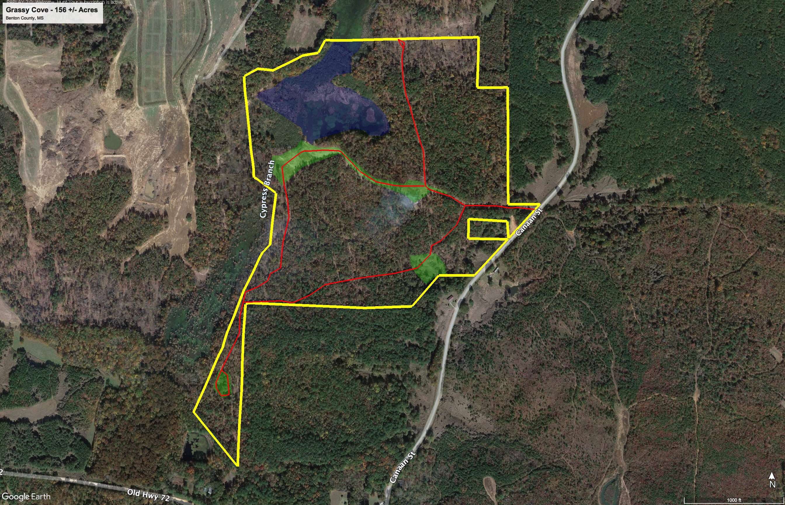 Grassy Cove is a unique recreational property located in Benton County, MS. The crown of the property and its namesake Grassy Cove, a 16 +/- acre spring-fed wetland area located in the heart of the property. This natural wetland provides a home for largemouth bass and other game fish as well as multiple waterfowl and shore bird species. The Cove is signifiant ecologically as it is teeming with life and provides water year round on the property.