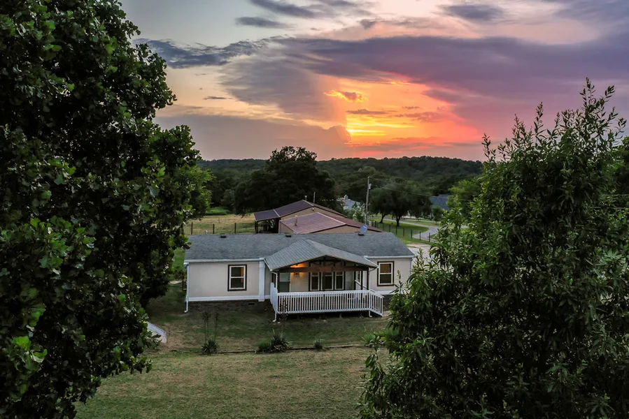 Discover the perfect blend of rural living and modern comfort with this 3 +/- acre homestead in the heart of Roger’s County in Claremore, Oklahoma. This well-maintained property features an updated 3-bedroom, 2-bathroom mobile home, boasting an additional 600 square foot enclosed back porch and laundry room, bringing the total square footage to 1,844 square feet. The back porch, with its warm cedar interior, is an ideal spot for family gatherings. Both the front and back porches offer decks where you can enjoy the stunning sunrise and sunset views and the tranquility of rural living.