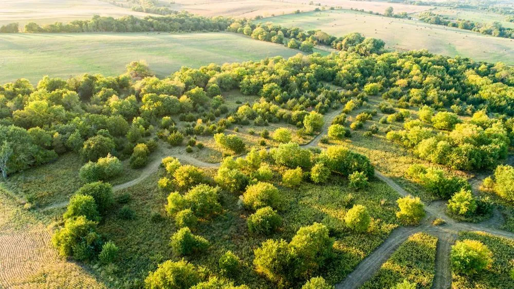 -Mowed trails through the farm