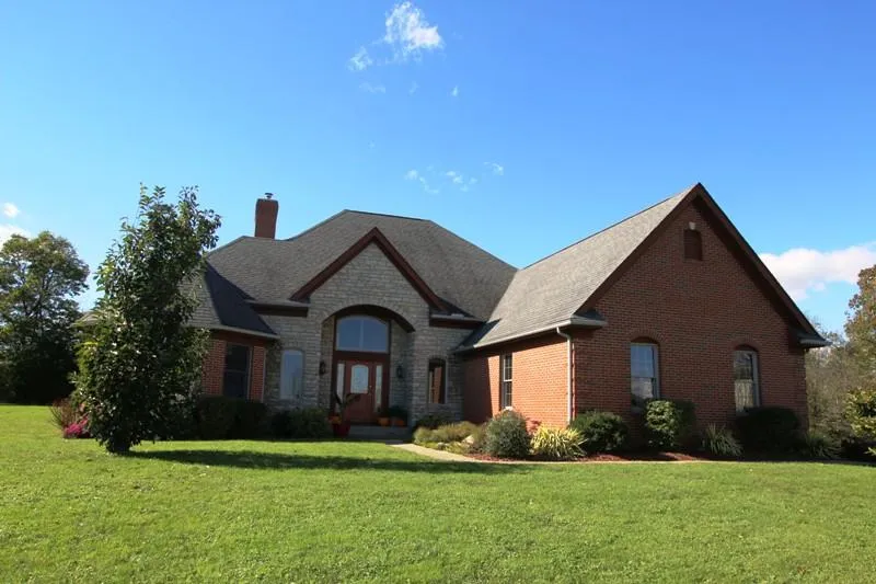 This is a great custom built country home with loads of privacy back a drive across a creek. The home is mostly brick with an impressive great room, dining room, and first floor master suite. Upstairs are two bedrooms that share a Jack and Jill bath. Other features include hardwood and ceramic floors throughout, granite counter tops, stainless appliances, and a lower level family room with a bar. Outside there is a large new paver patio with a 12' 6''raised cooking area and a 60'x32' colored splitfaced outbuilding. The outbuilding is divided with a 24'x32' garage (12'x16' overhead door) and a 36'x32' multipurpose barn with a second floor for lots of storage. The property is rolling and is presently hay fields, woods, and a beautiful treed rock bottom creek. Great location. ENJOY