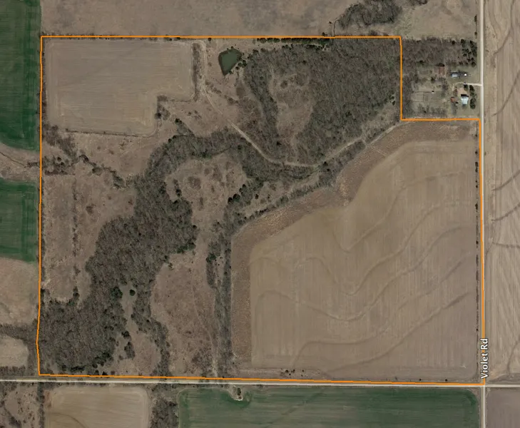 This awesome 120 acres in Woodson County Kansas has just about everything a guy wants from a South East Kansas Hunting farm. The creek running through the middle of the farm is surrounded by timber and thick brush with lots of places for hidden food plots. The farm has almost 50 acres of tillable itself and is surrounded by Corn and Bean fields as well. Its guarantied to offer an exciting fall. The big rubs throughout the farm are last years reminder of what it would have been like to hut this farm last November. There are multiple access points to the land allowing options to access the hidden fields throughout the acreage. The Aerials dont do this farm Justice, its a must see if your looking for a great South East Kansas Hunting farm.