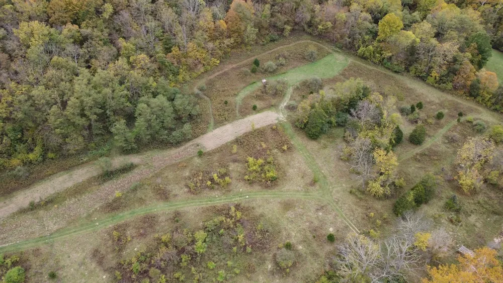 Exceptional recreational properties are highly sought after in Southeast Indiana, and here’s another one located just one mile from the scenic Ohio River. This versatile tract offers endless outdoor activities such as hunting, camping, hiking, off-roading, and mushroom hunting. The property features a gated entrance with electric access at the road, leading to two barns for storage and a trail crossing a creek. Beyond the creek lies a hillside pasture of approximately 5 acres, currently planted with food plots and native vegetation designed for optimal deer and turkey habitat. The vegetation layers are strategically maintained to support various wildlife species. In addition to natural clover and grass bedding, the property includes a standing cornfield and numerous oak trees providing acorns to sustain the local deer population. Above the pasture, a stand of mature timber sweeps eastwar...