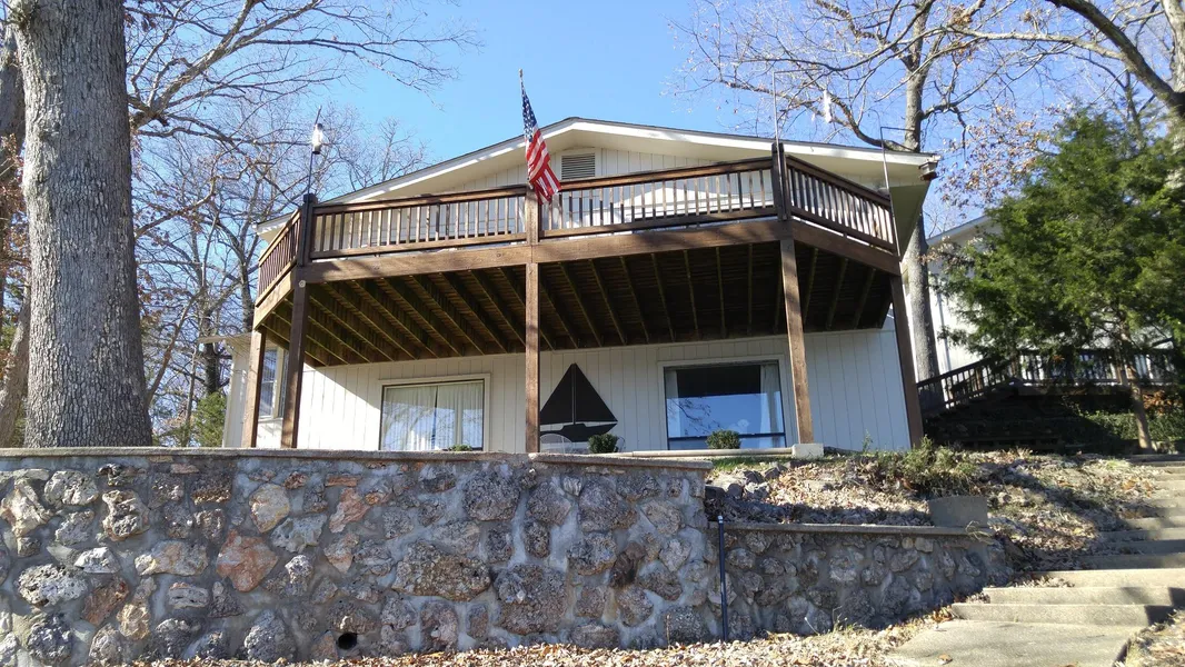 BIG PRICE REDUCTION! OWNER WANTS TO MOVE! Great location by land & water. Close to town & shopping, blacktop roads, 147 ft of deep water lakefront with permitted seawall & acreage (3.5 acres), great views of a large cove at the 10 mile marker, no dock but has a permit for a dock. Home has 2 BR, 2.5 BA and 1 BR, 1 BA in a guest cottage right next to the house. Great for company or grandkids. Guest house has wall unit for heat and wall A/C with a deck on the lakeside to enjoy the view. House has large rooms and open concept. Lots of large windows for great views of the cove. Lower level has a concrete patio. Lots of storage space in the house. 2 septic systems. 2-car detached garage with a workshop & the guest cottage attached. Property has a small greenhouse for starting & storing plants & a tool shed connected. This property has lots to offer. You could even build a large storage building on the acreage above the house. Come take a look!