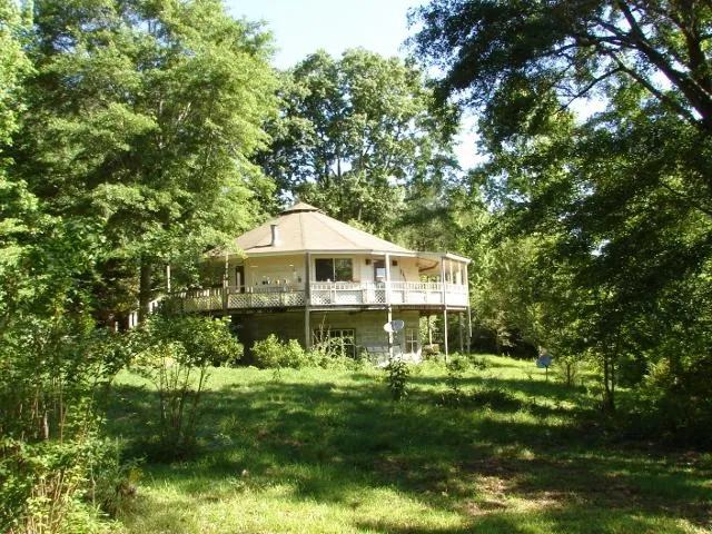 What a great location halfway between Auburn and Montgomery just off of Interstate 85. This property has a two story, 3BR/ 2BA, Deltec octagon shaped home situated in a grove of mature, hardwood trees. Deltec homes are famous for their sound construction and durability. There is a concrete slab under the home and concrete block walls around the exterior of the first floor. The second floor is wrapped with Deltecs strong, prefabricated, exterior walls. The home has two stories with a wraparound deck on the second level. There are also plenty of windows that bring in natural light and allow for great wildlife viewing opportunities. The den area has a Waterford wood burning cook stove. There are some outbuildings close to the house that are used for storage or hobby farming. The land is covered in trees and has a creek on the east side. The terrain is flat to gently rolling. It c...