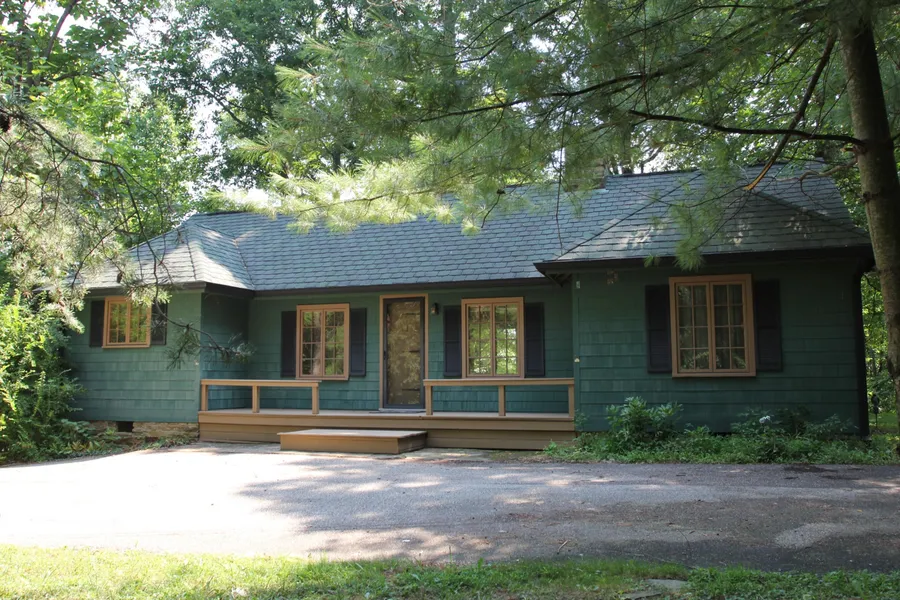 Location, Location! Charming bungalow located on scenic St Rd 135 N just 3 miles from Nashville. Welcoming circular drive leads you home. Inviting living room with hardwood floor, wood beamed cathedral ceiling, gas log and artisan crafted BC stone fireplace. Master bedroom with built-in armoires and hardwood floor. Loft bedroom with wooded view. Huge sun room w/built-in bench seating and dual access to the wrap around deck. 2.2 acres, long range view, woods and large yard.Dutch doors, knotty pine walls.