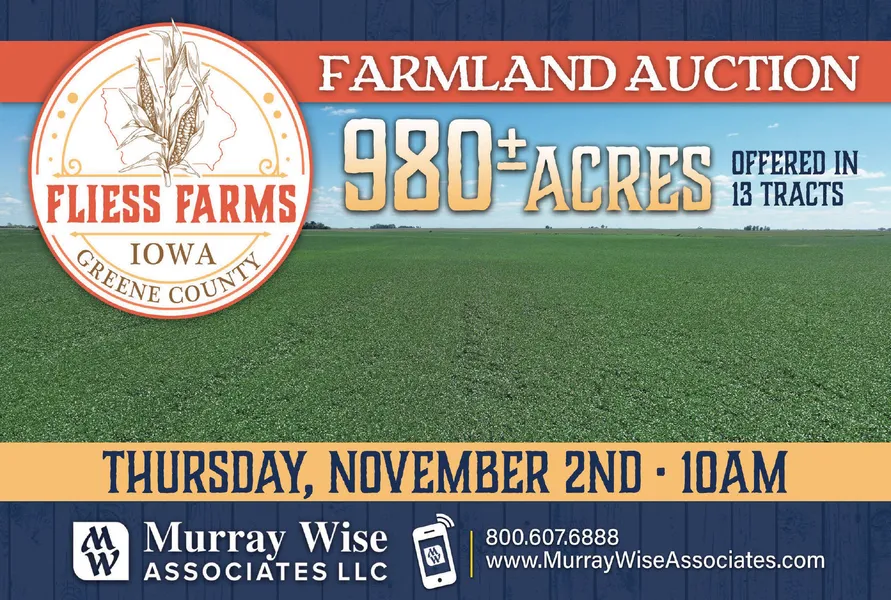 This high-quality farmland located in Greene County features excellent soils. This is a rare opportunity to own a large premium Iowa farm. The property contains 980 gross acres and 947.36 FSA DCP Cropland Acres. A farm of this size that includes 97...