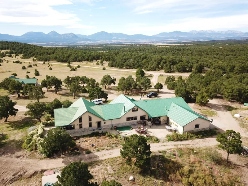 Additional info:Construction: stucco and stone exterior with metal roofsFire mitigation has been done around the buildings35 minutes from Walsenburg/I-25; 45 minutes from Westcliffe; Mission Wolf is 10 miles NMain house built in 1995, remodeled with an addition in 2000Office/shop built in 2000.