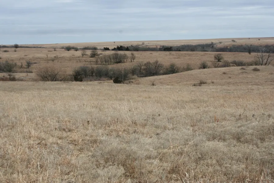 Very good Native Flinthills pasture. This pasture features picturesque hilly terrain with the high view in the center then dropping off into a valley drainage way. The Bluestem grass has been well managed and is open and clean excepting the southeast corner where Swing Creek meanders through, lined with hardwood timber providing live water and cover for livestock and wildlife.
