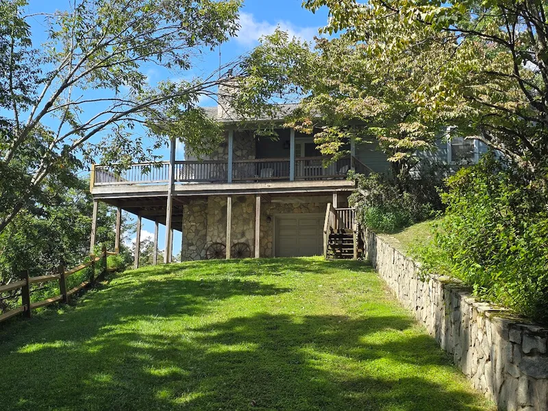 Log home in Barn Gate subdivision with 9+ acres, subdivision very well maintained with caretaker for mowing, roads, and snow removal. Has common area with pond and shelter. Located approx. 10 min from West Jefferson just out of Warrensville. Home has been maintained with recent work on deck. 2 bedrooms with bonus room and 2 baths on main level. Great room with open kitchen and large counter, dining area, living room with fireplace, Large doors access the deck and provide for the view of Phenix Mtn. Partial basement