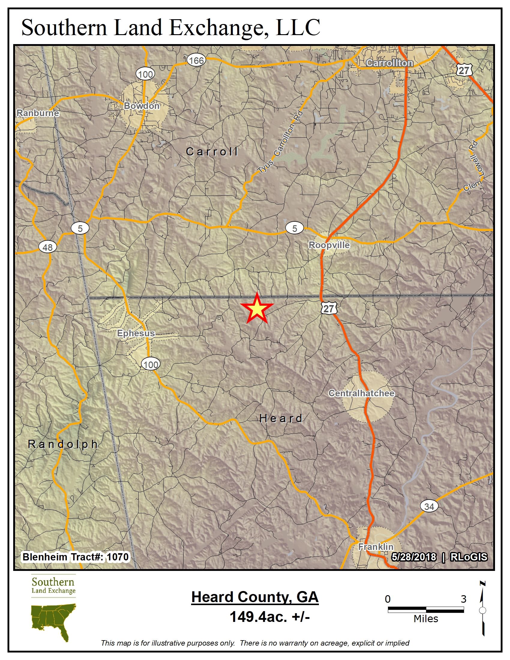 From the Intersection of GA HWY 5 and US HWY 27 proceed west on GA WY 5 for 0.25 miles, turn south on Old HWY 27 S. Drive south on Old US HWY 27 for 0.62 miles and bear right on Roopville Veal Rd. Continue west on Roopville Veal Rd for 2.75 miles, turn left on Potts Circle. Follow Potts Circle for 0.75 miles and tract will be on the right.