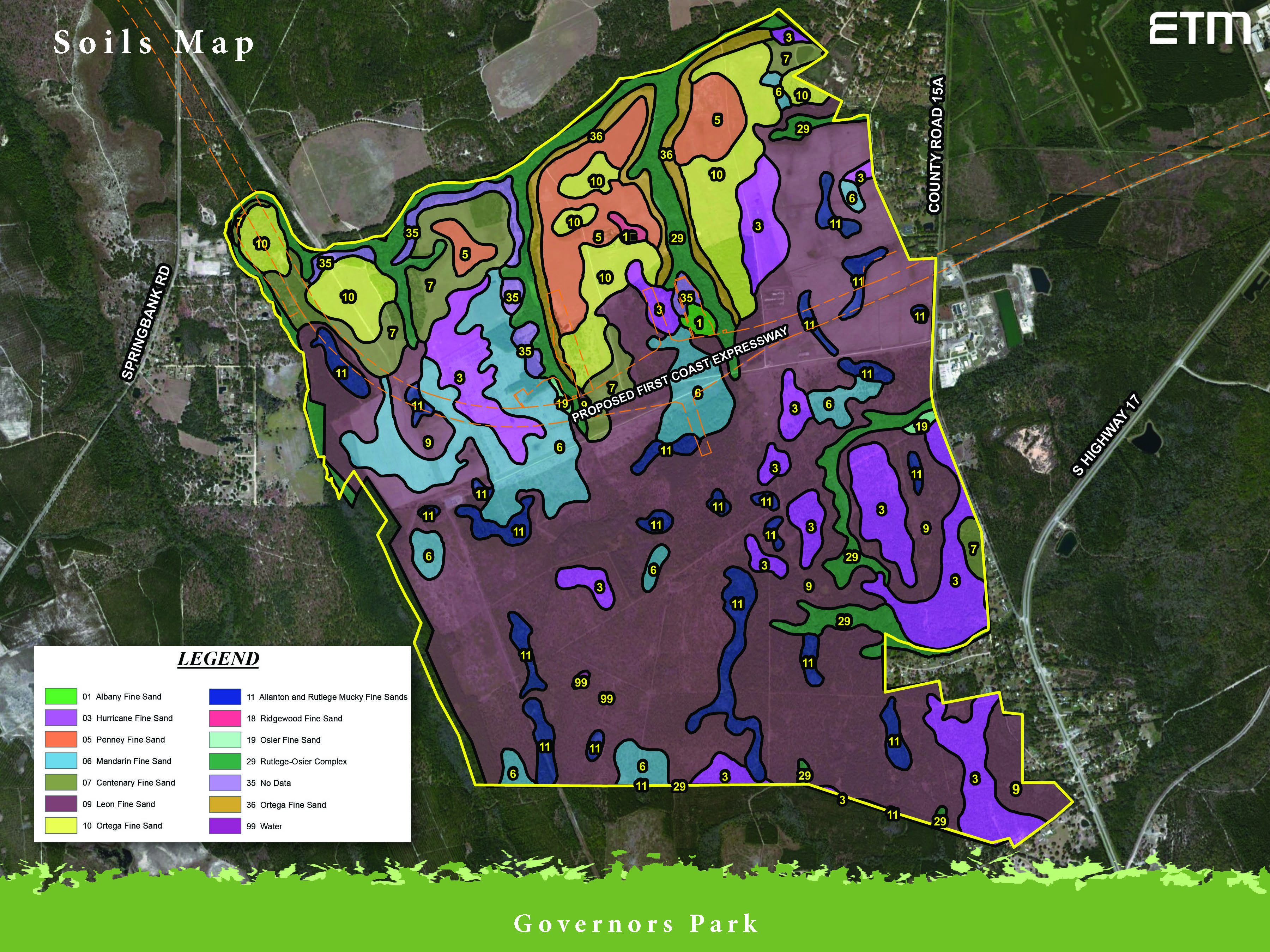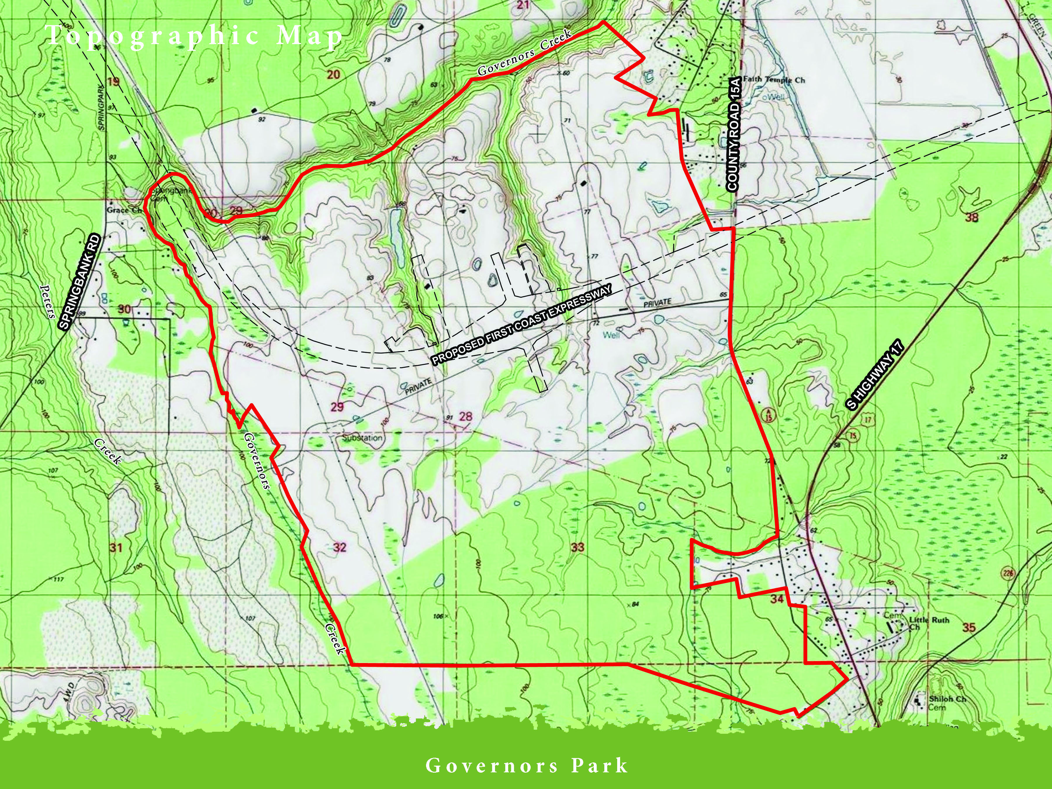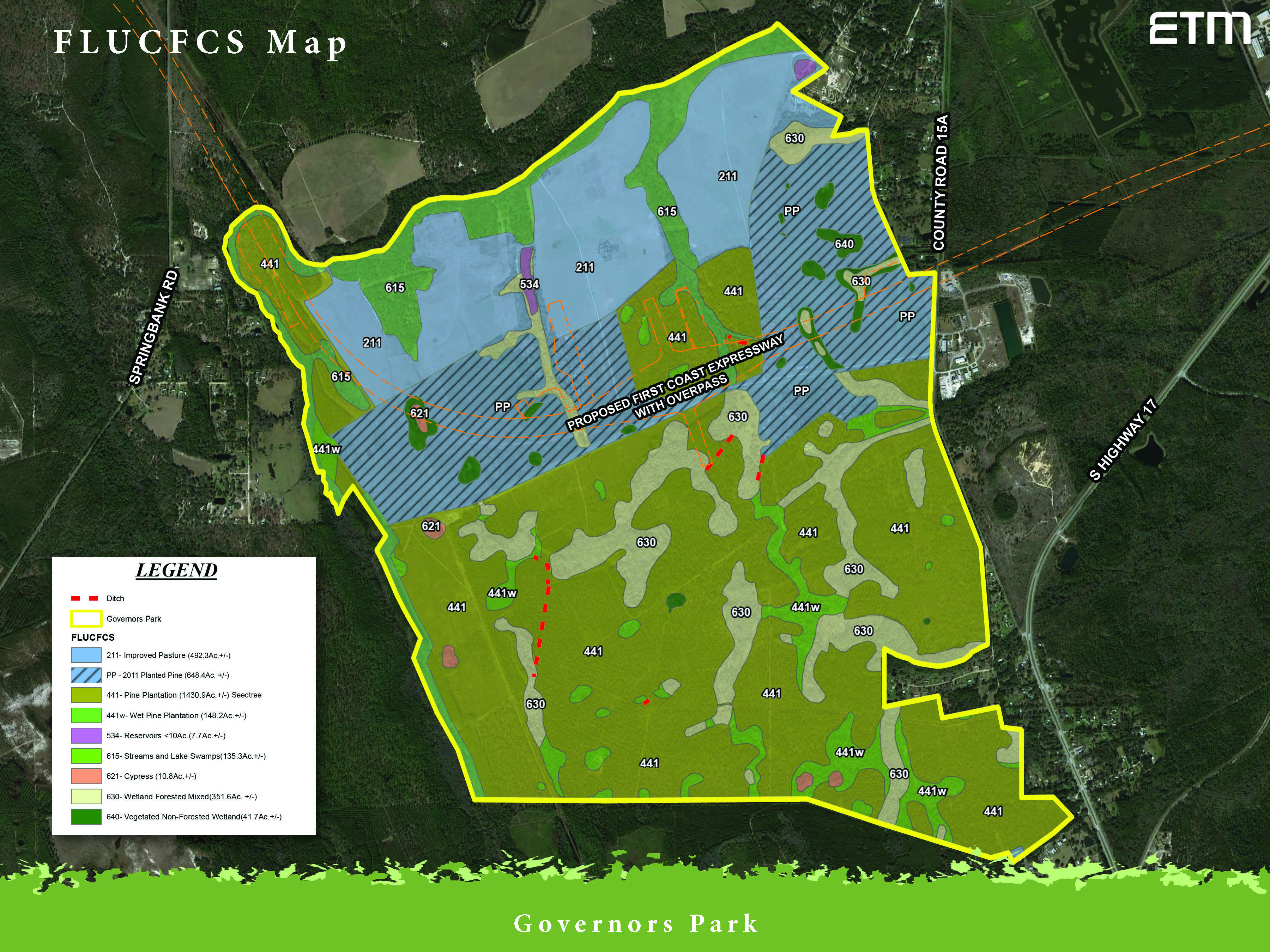 Master Planned Community available in Jacksonville MSA. Current Timber and Ranching income available. The Gustafson Ranch was established in 1905 with one cow and grew to one of the largest dairy farms in the U.S. with 10,000 cows on approximately 9,600 contiguous acres at its peak. The ranch is located in Jacksonville, Florida and is an integral part of the growth of both the city and the states transportation infrastructure. For the first time in over 100 years the Gustafson Family plans to sell 3,267 acres known as Governors Park, a Development of Regional Impact, or DRI, planned for residential, commercial and industrial uses. The project is fully entitled with a utilities agreement to provide utilities. Future infrastructure improvements will bring a new interstate through the ranch with its own interchange, I-795, which is already started and expected to be completed in phases over the next 10 years. Currently the ranch is being used, as it has been for most of its history, as a cattle ranch and high-fence hunting preserve. Governors Park features frontage along Governors Creek for over 9 miles. The natural beauty of the ranch is unparalleled in this part of Florida, with over 100' of elevation change across all of its 3,200 acres. There is 492 acres of pasture, 2,227 acres of planted and natural pine and 12 permitted wells ranging from 70 to 1,100 GPM in capacity.