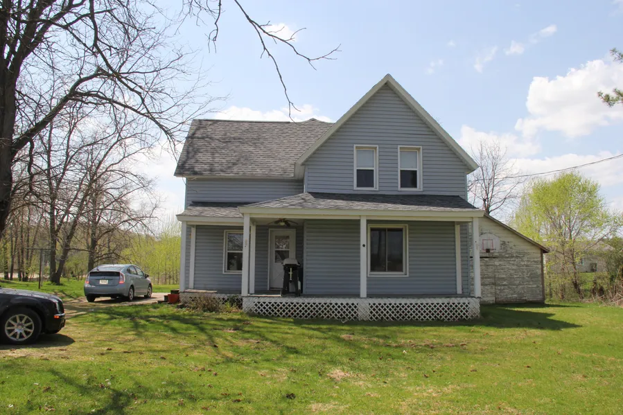 This is a 2-story home on 1 acre with frontage to the lake. This is a 4-BR home w/2 full BA, kitchen & DR open concept, LR. There is an unfinished basement. There are 2 lawn sheds. There is a new roof & siding & windows in 2014. There is an electric water heater & furnance. Appliances included: stove, refrig., washer/ dryer & 2 window A/C units. There is an open porch.