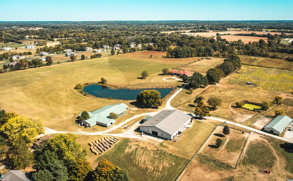 An amber sunrise greets the morning as a newborn, blanketing the earth in warmth and light. Trees hung with fog stand sentry, enclasping and concealing the ground beneath. The air is still and silent aside from the low distant thunder of falling hooves growing louder and stronger until one by one, horses burst into view in a wave of mane, tail, and hoof. Welcome to Hacienda Del Molinero home of the well bred Paso Fino. Located near Farmington, Missouri, about two hours south of St. Louis in St. Francois County, Hacienda Del Molinero has been operated by the current owners for over 20 years, and the result is an exceptional working facility. State of the art amenities compliment the property and provide an ideal setup for both professional and amateur equestrian activities. For bluebird sky’s, a 60x120 outdoor arena allows for plenty of fresh air and space to train or host an event, while a large indoor arena located off of the main barn serves as an added option. In addition to the indoor arena, the main barn boasts 13 stalls including a birthing stall, 3 stallion stalls, a mare and foal stall, and 8 regular stalls, all with padded flooring and serviced by automatic Nelson Waterers. An additional 14 stalls can be found in the round pen barn, as well as the 60’ sunken round pen itself, a tacking area with water for bathing, a tack room, feed room, bathroom, and a storage room for hay or equipment. Furthermore, a third barn provides 14 more stalls equipped with automatic Nelson Waterers, as well as storage for hay and equipment, a main floor office space, two additional tacking areas, a tack room, and tack closet. Two full one bedroom, one bathroom apartments can also be found in the third barn, as well as 4 outdoor wash bays. Rounding out the improvements on this incredible property is a nearly 9000 sq ft home boasting 6 bedrooms with large walk-in closets, 6 and a half bathrooms, and a beautiful custom kitchen. Additional notable features of the home include the full walkout basement with a hidden theater room, an indoor hot tub room, and a whopping 8’ deep in-ground pool. It's rare to have the opportunity to own such a high amenity equestrian facility of this caliber, but rarer still to own one that has been so well maintained. So bring your saddles and stirrups, and know that when shades of orange overwhelm the sky in the evening after a long day, the sun will set only to rise again on Hacienda Del Molinero.