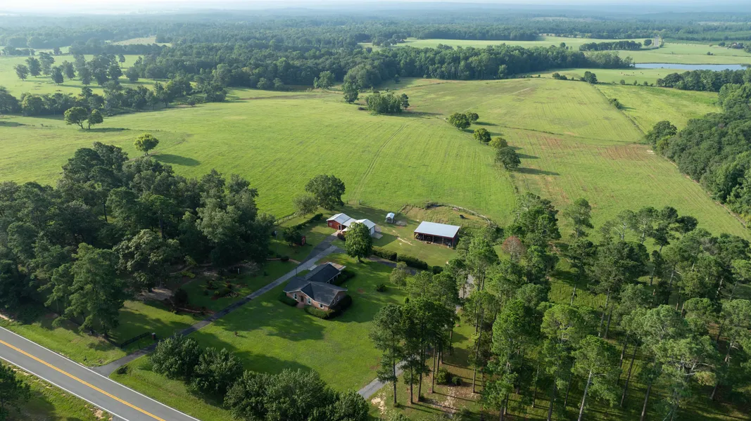 This country getaway is located in a historically significant, postcard perfect area of well kept farms and woodlands. This subject property is fenced and cross fenced suitable for cows and/or horses. A neat 3 BR 2 BA brick home has fireplace and screened porch. Double paved road frontage permits multiple considerations for land use. Heavily forested timberlands in two locations complement other adjoining pasture lands. Pretty. This is arguably the very prettiest part of Taylor County and pride of ownership is evident. The current owner has used the pasture for horses and cattle. Multiple stall barn and working pens sits on the north side of the road. The north pasture has been used for a hay pasture for producing bales for the cooler months. The south side holds the house, an enclosed metal building for storage, and a pole barn for equipment storage. The south side of the property holds the cross fenced pastures and a pond to allow year round water for the livestock. Shown by appointment only. Paved road frontage.