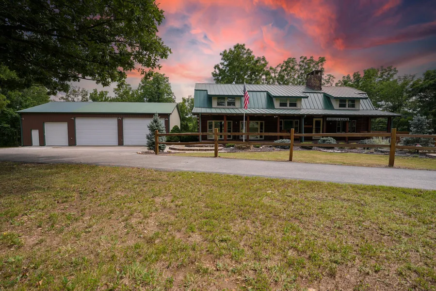 Double D Ranch is an incredible property that combines country living with a beautiful and secluded atmosphere in the Ozarks. As you approach the ranch, you'll be greeted by a half-mile asphalt drive that leads to a breathtaking 3600 square foot, handcrafted log home. This spacious residence is turnkey and features five bedrooms, four and a half bathrooms, and is designed to provide a warm and quiet country feeling with two fireplaces, large living areas and custom finishes throughout. In addition to the stunning home, the property boasts a large heated shop, adding to its practicality and functionality.The ranch itself is surrounded by rolling timberland, creating a picturesque setting. It offers a whitetail paradise with the presence of mature hardwood timber, creeks, ponds, multiple food plot locations, and great trails to access all the tree stand locations on the property. The layou...