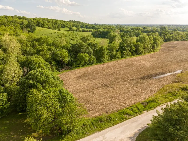 Tract 8 is a surveyed 10 acre tract that has the highest elevation of the entire development with incredible views overlooking the town of Orrick and the river bottoms to the west. Situated with an option to build right off the road with privacy from the timber to your south and east, or across a low water creek crossing and tucked in the back of the property on top of the hillside. The property is mixed with existing grassland, diverse timber, and a creek, with two mature and beautiful oak trees that somewhat stand alone on the south side. A portion of the open ground is in crops. Wildlife sign is abundant including multiple deer tracks, trails, and several good turkey roosting trees. Recreation use would include hunting, wading and exploring in the creek, UTV or ATV trail riding, or simply enjoying time in the outdoors.